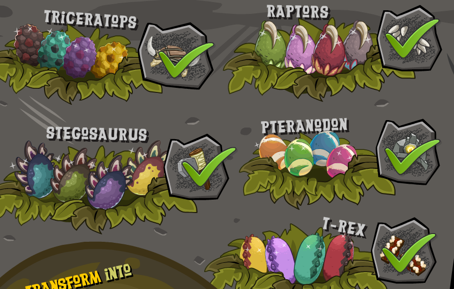 Tak se stanete dinosaurem. Také jak tam jsou ty zelené fajfky, tak tam je tlačítko collect, když pozbíráte všech pět vajíček z jedné skupiny. Pak dostanete odměnu. Bohužel admini tučňáků neudělali žádnou odměnu za pozbírání všech vajíček. To je vše z této párty.